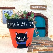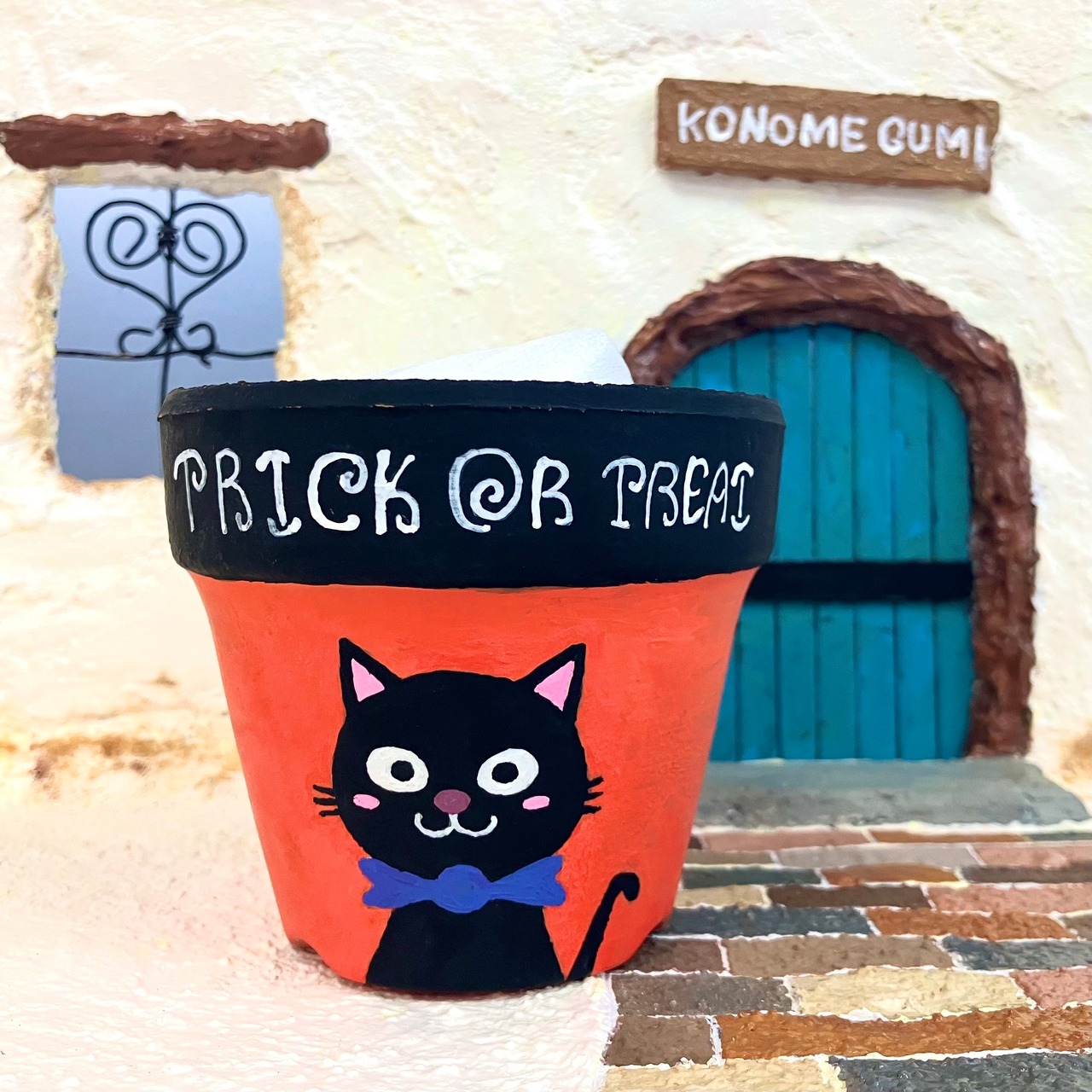 手描きで仕上げた【黒猫】モチーフのリメイク鉢です。