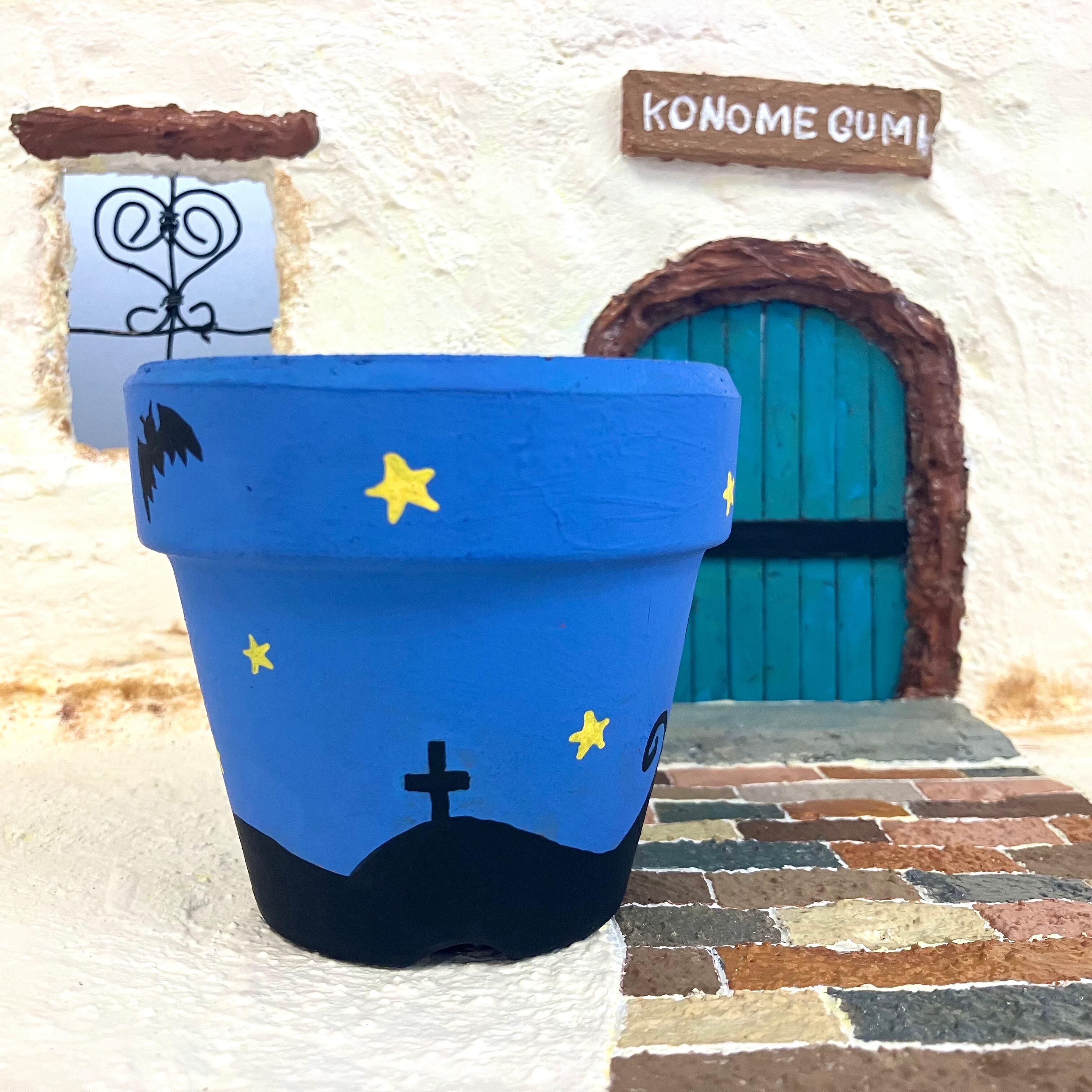 3号素焼き鉢にアクリル絵具で色付けしました。