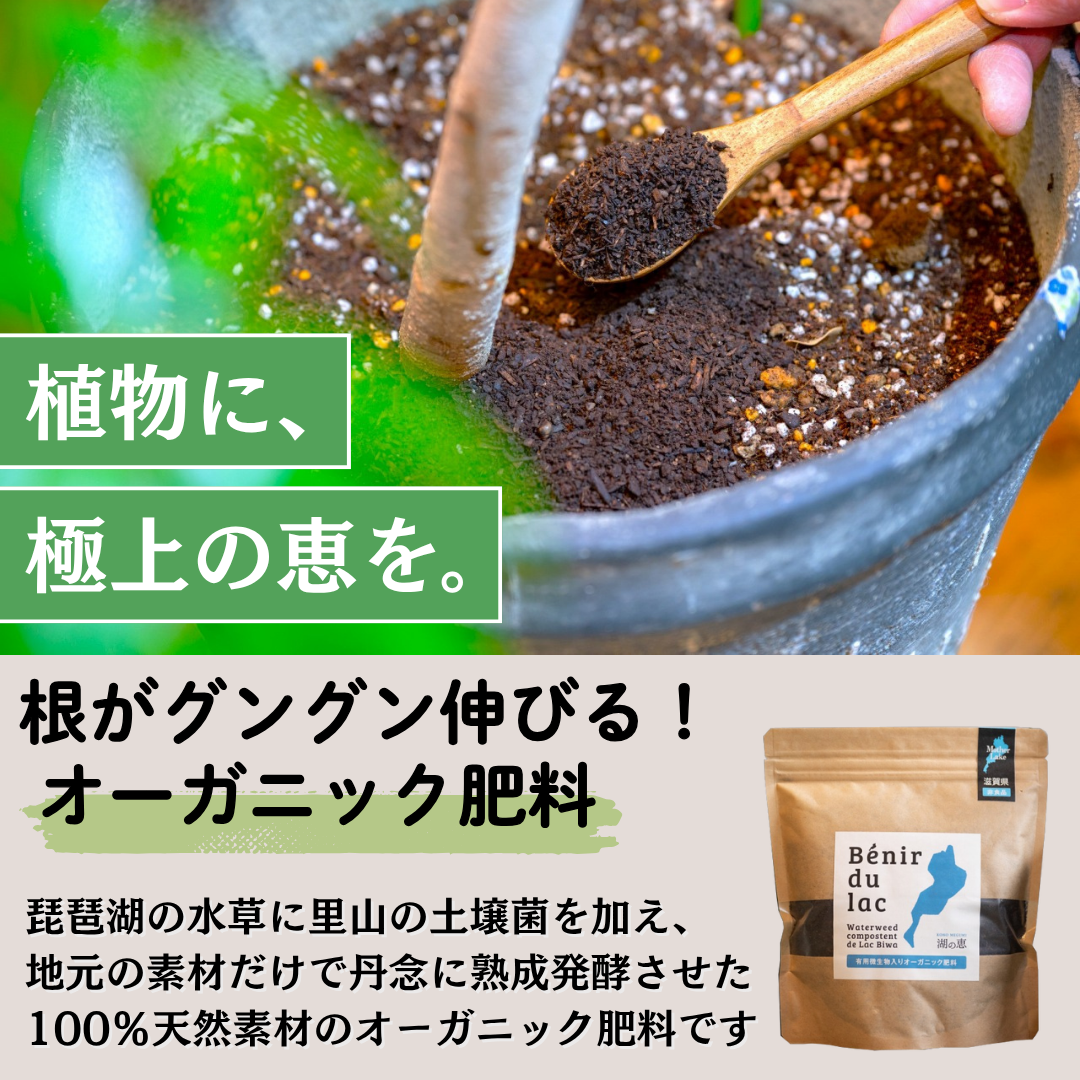 水草の過剰繁茂で悩む琵琶湖。その除去・再利用を通じて生まれるこの肥料は、